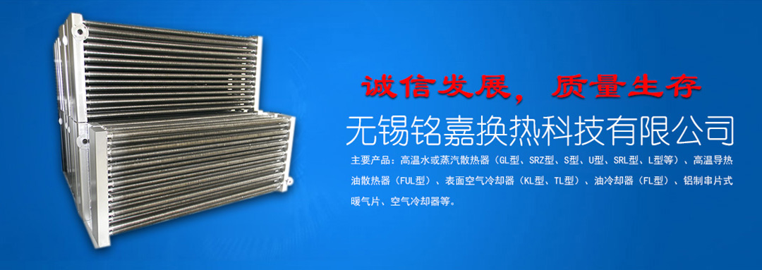 無錫銘嘉換熱科技有限公司是生產散熱器的專業工廠。 產品有:高溫水或蒸汽散熱器高溫導熱油散熱器表面空氣冷卻器油冷卻器鋁制串片式暖氣片空氣冷卻器翅片管換熱器